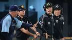[OSEN=부산, 이석우 기자] 8일 부산 사직구장에서 2023 신한은행 SOL KBO리그 롯데 자이언츠와 KT 위즈의 경기가 열렸다. 롯데 자이언츠 서튼 감독이 연장 11회 말 무사 1루 롯데 자이언츠 정훈의 번트를 KT 위즈 이상호가 잡았다고 보고