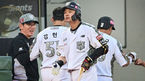 [OSEN=부산, 이석우 기자] 8일 부산 사직구장에서 2023 신한은행 SOL KBO리그 롯데 자이언츠와 KT 위즈의 경기가 열렸다. KT 위즈 이강철 감독이 4회초 1사 만루 배정대의 2타점 적시타 때 득점을 올린 강현우, 황재균과 하이파이브를 하