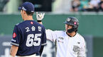 [OSEN=고척, 이대선 기자] 8일 오후 서울 고척스카이돔에서 ‘2023 신한은행 SOL KBO리그’ 키움 히어로즈와 LG 트윈스의 경기가 열렸다.2회말 LG 김윤식이 호수비를 펼친 신민재에게 박수를 보내고 있다. 2023.06.08 /sunday@osen.co.kr