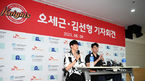 [OSEN=민경훈 기자] 8일 오후 서울 강남구 논현동 KBL 센터에서 서울 SK 나이츠 오세근과 김선형의 합동 기자회견이 열렸다.최근 FA 최대어 중 한 명이었던 오세근이 계약 기간 3년에 보수 총액 7억 5천만원의 조건으로 전격 SK 이적을