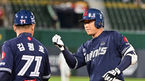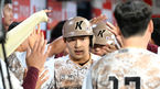 [OSEN=고척, 이대선 기자] 8일 오후 서울 고척스카이돔에서 ‘2023 신한은행 SOL KBO리그’ 키움 히어로즈와 LG 트윈스의 경기가 열렸다.8회말 2사 2,3루에서 키움 김준완 의 2타점 적시 2루타 때 홈을 밟은 김휘집과 김동헌이 더그아웃