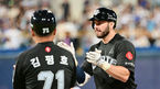 [OSEN=대구, 이석우 기자] 9일 대구 삼성라이온즈파크에서 2023 신한은행 SOL KBO리그 삼성 라이온즈와 롯데 자이언츠의 경기가 열렸다. 롯데 자이언츠 렉스가 5회초 1사 만루 1타점 적시타를 치고 박수를 치고 있다. 2023.06.09 / foto0307@