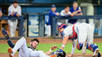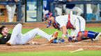 [OSEN=대구, 이석우 기자] 9일 대구 삼성라이온즈파크에서 2023 신한은행 SOL KBO리그 삼성 라이온즈와 롯데 자이언츠의 경기가 열렸다. 롯데 자이언츠 렉스가 5회초 2사 2,3루 고승민의 적시타 때 득점을 올리며 홈에서 충돌해 쓰러진