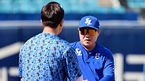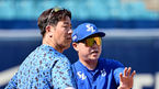 [OSEN=대구, 이석우 기자] 9일 대구 삼성라이온즈파크에서 2023 신한은행 SOL KBO리그 삼성 라이온즈와 롯데 자이언츠의 경기가 열린다. 삼성 라이온즈 박진만 감독이 강민호와 얘기하고 있다. 2023.06.09 / foto0307@osen.co.kr