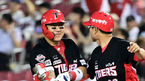 [OSEN=잠실, 조은정 기자] 10일 서울 잠실구장에서 2023 신한은행 SOL KBO리그 두산 베어스와 KIA 타이거즈의 경기가 열렸다.9회초 1사 2루 KIA 최형우의 중견수 오른쪽으로 향하는 1타점 적시타에 득점을 올린 소크라테스가 김종국 감독