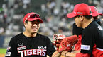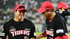 [OSEN=잠실, 조은정 기자] 10일 서울 잠실구장에서 2023 신한은행 SOL KBO리그 두산 베어스와 KIA 타이거즈의 경기가 열렸다.8회초 1사 KIA 이창진이 몸 맞는 공을 던진 두산 박정수의 사과를 받고 있다. 2023.06.10 /cej@osen.co.kr