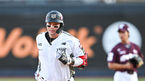 [OSEN=수원,박준형 기자] 11일 오후 수원KT위즈파크에서 2023 신한은행 SOL KBO리그 KT 위즈와 키움 히어로즈의 경기가 진행됐다.8회초 1사 2,3루 키움 이형종의 희생플라이때 황재균 3루수가 태그업 성공한 2루 주자 이정후를 향해 미소