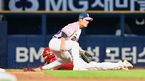 [OSEN=수원,박준형 기자] 11일 오후 수원KT위즈파크에서 2023 신한은행 SOL KBO리그 KT 위즈와 키움 히어로즈의 경기가 진행됐다.8회초 1사 2,3루 키움 이형종의 희생플라이때 2루 주자 이정후가 3루 태그업 성공한뒤 황재균과 이야기를
