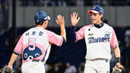 [OSEN=창원, 이석우 기자] 11일 창원 NC파크에서 2023 신한은행 SOL KBO리그 NC 다이노스와 SSG 랜더스의 경기가 열렸다. NC 다이노스 강인권 감독이 8회말 1사 2,3루 천재환의 2타점 적시타 때 득점을 올린 도태훈과 하이파이브를 하고 있