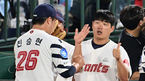 [OSEN=잠실, 최규한 기자] 13일 오후 서울 잠실야구장에서 ‘2023 신한은행 SOL KBO리그’ LG 트윈스와 삼성 라이온즈의 경기가 열렸다.7회말 1사 3루 상황 LG 이재원이 동점 1타점 희생플라이를 날리고 더그아웃 동료들과 인사를 나누