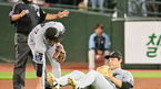 [OSEN=부산, 이석우 기자] 13일 부산 사직구장에서 2023 신한은행 SOL KBO리그 롯데 자이언츠와 한화 이글스의 경기가 열렸다. 한화 이글스 문동주가 3회말 롯데 자이언츠 유강남의 내야 안타때 볼을 잡으려다 넘어지고 있다. 2023.06.13