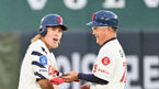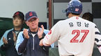 [OSEN=부산, 이석우 기자] 13일 부산 사직구장에서 2023 신한은행 SOL KBO리그 롯데 자이언츠와 한화 이글스의 경기가 열렸다. 롯데 자이언츠 서튼 감독이 2회말 2사 1,2루 황성빈의 적시타 때 득점을 올린 유강남에게 박수를 치며 격