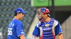[OSEN=잠실, 최규한 기자] 13일 오후 서울 잠실야구장에서 ‘2023 신한은행 SOL KBO리그’ LG 트윈스와 삼성 라이온즈의 경기가 열렸다.3회말 1사 1, 2루 상황 삼성 포수 강민호가 마운드를 방문해 선발 최채흥과 대화를 나누고 있다. 20