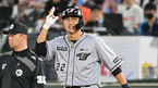 [OSEN=부산, 이석우 기자] 13일 부산 사직구장에서 2023 신한은행 SOL KBO리그 롯데 자이언츠와 한화 이글스의 경기가 열렸다. 한화 이글스 채은성이 6회초 2사 1,3루 1타점 적시타를 치고 세리머니를 하고 있다. 2023.06.13 / foto0307@osen.co.