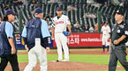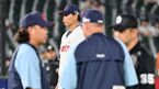 [OSEN=부산, 이석우 기자] 14일 부산 사직구장에서 2023 신한은행 SOL KBO리그 롯데 자이언츠와 한화 이글스의 경기가 열렸다. 롯데 자이언츠 박진이 6회초 2사 만루 보크를 허용해 실점당하고 서튼 감독의 어필을 바라보고 있다. 2023.0
