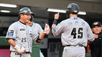 [OSEN=부산, 이석우 기자] 14일 부산 사직구장에서 2023 신한은행 SOL KBO리그 롯데 자이언츠와 한화 이글스의 경기가 열렸다. 한화 이글스 김태연이 1회초 1사 2,3루 채은성의 2타점 적시타 때 득점을 올린 이진영과 기쁨을 나누고 있