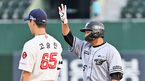 [OSEN=부산, 이석우 기자] 14일 부산 사직구장에서 2023 신한은행 SOL KBO리그 롯데 자이언츠와 한화 이글스의 경기가 열렸다. 한화 이글스 김태연이 1회초 1사 1,3루 1타점 적시타를 치고 세리머니를 하고 있다. 2023.06.14 / foto0307@osen.co.