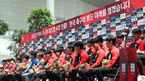 [OSEN=인천국제공항, 조은정 기자] 국제축구연맹(FIFA) 20세 이하(U-20) 월드컵 4강에 진출에 성공한 김은중호가 14일 인천국제공항을 통해 아르헨티나에서 귀국했다.U-20 대표팀이 환영 행사에 참석하고 있다. 2023.06.14 /cej@osen.co.kr