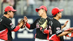 [OSEN=부산, 이석우 기자] 15일 부산 사직구장에서 2023 신한은행 SOL KBO리그 롯데 자이언츠와 한화 이글스의 경기가 열렸다. 한화 이글스 최원호 감독이 롯데 자이언츠와 연장 10회까지 가는 승부끝에 5-4로 승리한 후 기쁨을 나누고
