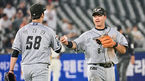 [OSEN=부산, 이석우 기자] 15일 부산 사직구장에서 2023 신한은행 SOL KBO리그 롯데 자이언츠와 한화 이글스의 경기가 열렸다. 한화 이글스 박상원이 롯데 자이언츠와 연장 10회까지 가는 승부끝에 5-4로 승리한 후 최재훈과 기쁨을 나