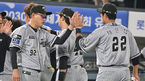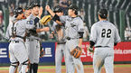 [OSEN=부산, 이석우 기자] 15일 부산 사직구장에서 2023 신한은행 SOL KBO리그 롯데 자이언츠와 한화 이글스의 경기가 열렸다. 한화 이글스 선수들이 롯데 자이언츠와 연장 10회까지 가는 승부끝에 5-4로 승리한 후 기쁨을 나누고 있다