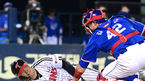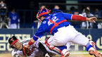 [OSEN=잠실, 최규한 기자] 15일 오후 서울 잠실야구장에서 ‘2023 신한은행 SOL KBO리그’ LG 트윈스와 삼성 라이온즈의 경기가 열렸다.6회말 2사 1루 상황 LG 김현수의 오른쪽 2루타 때 주자 문보경이 홈까지 내달려 슬라이딩 해 삼성
