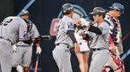 [OSEN=잠실, 최규한 기자] 15일 오후 서울 잠실야구장에서 ‘2023 신한은행 SOL KBO리그’ LG 트윈스와 삼성 라이온즈의 경기가 열렸다.4회말 1사 주자없는 상황 LG 김현수가 추격의 우월 솔로포를 날리고 홈을 밟은 뒤 더그아웃 동료