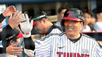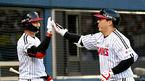 [OSEN=부산, 이석우 기자] 15일 부산 사직구장에서 2023 신한은행 SOL KBO리그 롯데 자이언츠와 한화 이글스의 경기가 열렸다. 한화 이글스 문현빈이 3회초 2사 1루 우월 투런 홈런을 치고 하이파이브를 하고 있다. 2023.06.15 / foto0307@osen