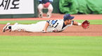 [OSEN=부산, 이석우 기자] 15일 부산 사직구장에서 2023 신한은행 SOL KBO리그 롯데 자이언츠와 한화 이글스의 경기가 열렸다. 롯데 자이언츠 한동희가 3회초 무사 한화 이글스 노시환의 타구를 잡으려고 몸을 날렸으나 미치지 않자