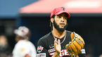 [OSEN=고척, 박준형 기자] 15일 오후 서울 고척스카이돔에서 2023 신한은행 SOL KBO리그 키움 히어로즈와 KIA 타이거즈의 경기가 진행됐다. 1회말 2사 3루 키움 러셀을 내야 뜬공 아웃시킨 KIA 서발투수 메디나가 박수를 치며 기뻐하고