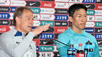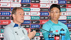 [OSEN=부산, 이석우 기자] 15일 부산아시아드주경기장에서 하나은행 초청 축구 국가대표 친선경기 페루전을 앞두고 대한민국 축구국가대표팀의 공식 기자회견이 열렸다. 클린스만 감독과 김승규가 기자들의 질문에 답하고 있다.