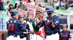 [OSEN=잠실, 박준형 기자] 17일 오후 서울 잠실구장에서 2023 신한은행 SOL KBO리그 LG 트윈스와 두산 베어스의 경기가 진행됐다.2회초 1사 2,3루 두산 박계범이 선취 1타점 적시타를 날리고 고영민 1루 코치에게 장비를 전달하고 있다.