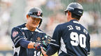 [OSEN=인천, 최규한 기자] 17일 인천 SSG랜더스필드에서 ‘2023 신한은행 SOL KBO리그’ SSG 랜더스와 롯데 자이언츠의 경기가 열렸다.2회초 무사 1루 상황 롯데 유강남이 선제 좌월 투런포를 날리고 홈을 밟으며 김평호 코치와 인사를