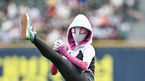 [OSEN=잠실, 박준형 기자] 17일 오후 서울 잠실구장에서 2023 신한은행 SOL KBO리그 LG 트윈스와 두산 베어스의 경기가 진행됐다.경기 앞서 스파이더 그웬 캐릭터가 시구를 하고 있다. 2023.06.17 / soul1014@osen.co.kr