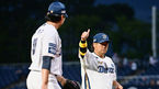 [OSEN=창원, 이석우 기자] 20일 창원 NC파크에서 2023 신한은행 SOL KBO리그 NC 다이노스와 LG 트윈스의 경기가 열렸다. NC 다이노스 박석민이 4회초를 무실점을 막은 송명기에게 엄지척을 하고 있다. 2023.06.20 / foto0307@osen.co.kr