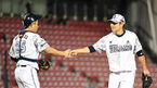 [OSEN=잠실, 이대선 기자] 21일 오후 서울 잠실야구장에서 2023 신한은행 SOL KBO리그 두산 베어스와 SSG 랜더스의 경기가 열렸다.6회초 1사 1,2루에서 두산 최원준이 마운드를 내려가며 양의지와 악수를 하고 있다. 2023.06고21 /sunday@osen.