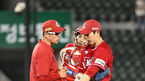 [OSEN=창원, 이석우 기자] 21일 창원 NC파크에서 2023 신한은행 SOL KBO리그 NC 다이노스와 LG 트윈스의 경기가 열렸다. NC 다이노스 조민석이 5회초를 무실점으로 막고 동료들과 하이파이브를 하고 있다. 2023.06.21 / foto0307@osen.co.kr