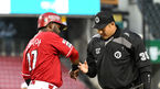 [OSEN=잠실, 이대선 기자] 21일 오후 서울 잠실야구장에서 2023 신한은행 SOL KBO리그 두산 베어스와 SSG 랜더스의 경기가 열렸다.4회초 1사 2루에서 두산 이승엽 감독이 SSG 에레디아의 몸에 맞는 공 판정에 대해 심판진에 항의하고 있