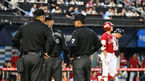 [OSEN=잠실, 이대선 기자] 21일 오후 서울 잠실야구장에서 2023 신한은행 SOL KBO리그 두산 베어스와 SSG 랜더스의 경기가 열렸다.4회초 1사 2루에서 심판진이 SSG 에레디아의 몸에 맞는 공 판정에 대해 그라운드에 모여 이야기를 나누고