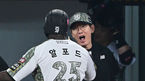 [OSEN=수원, 김성락 기자] 22일 오후 수원 KT위즈파크에서 ‘2023 신한은행 SOL KBO리그’ KT 위즈와 롯데 자이언츠의 경기가 열렸다.5회말 1사 1, 3루 KT 황재균의 1타점 적시타 때 3루 주자 알포드가 홈을 밟은 뒤 더그아웃에서 이강철