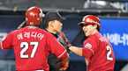 [OSEN=잠실, 민경훈 기자] 22일 오후 서울 잠실야구장에서 2023 신한은행 SOL KBO리그 두산 베어스와 SSG 랜더스의 경기가 열렸다.5회초 2사 주자 1,2루 SSG 강진성의 우익수 오른쪽 2타점 적시 2루타때 홈을 밟은 박성한과 에레디아가 덕