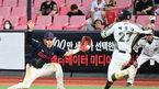 [OSEN=수원, 김성락 기자] 22일 오후 수원 KT위즈파크에서 ‘2023 신한은행 SOL KBO리그’ KT 위즈와 롯데 자이언츠의 경기가 열렸다.4회말 1사 1루 배정대의 내야안타 때 롯데 1루수 고승민이 3루수 한동희의 악송구를 놓치고 있다. 2023.