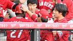 [OSEN=잠실, 민경훈 기자] 22일 오후 서울 잠실야구장에서 2023 신한은행 SOL KBO리그 두산 베어스와 SSG 랜더스의 경기가 열렸다.1회초 2사 SSG 에레디아가 좌월 솔로 홈런을 날린 후 덕아웃에서 최정과 하이파이브를 하고 있다. 2023.06.