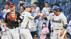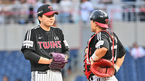 [OSEN=창원, 이석우 기자] 22일 창원 NC파크에서 2023 신한은행 SOL KBO리그 NC 다이노스와 LG 트윈스의 경기가 열렸다. LG 트윈스 선발투수 이민호가 1회부터 실점이 늘어나자 박동원과 얘기하며 아쉬워하고 있다. 2023.06.22 / foto0307@osen.c
