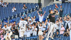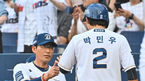 [OSEN=창원, 이석우 기자] 22일 창원 NC파크에서 2023 신한은행 SOL KBO리그 NC 다이노스와 LG 트윈스의 경기가 열렸다. NC 다이노스 강인권 감독이 1회초 무사 1,3루 박건우의 1타점 적시타 때 득점을 놀린 박민우에게 하이파이브를 하고