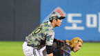 [OSEN=창원, 이석우 기자] 23일 창원 NC파크에서 2023 신한은행 SOL KBO리그 NC 다이노스와 한화 이글스의 경기가 열렸다. 한화 이글스 최재훈이 6회초 2사 2루 NC 다이노스 와이드너의 투구에 허벅지를 맞고 있다. 2023.06.23 / foto0307@osen.co.