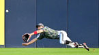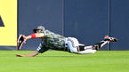 [OSEN=잠실, 지형준 기자] 23일 오후 서울 잠실야구장에서 ‘2023 신한은행 SOL KBO리그’ LG 트윈스와 롯데 자이언츠의 경기가 열렸다.1회초 무사에서 LG 박해민이 롯데 고승민의 중견수 플라이 타구를 몸 날려 처리하고 있다. 2023.06.23