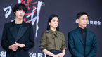 [OSEN=민경훈 기자] 23일 오후 서울 양천구 SBS 사옥에서 SBS 금토드라마 ‘악귀’ 제작발표회가 열렸다.배우 홍경 김태리 오정세가 입장하며 포즈를 취하고 있다. 2023.06.23 /rumi@osen.co.kr