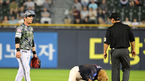[OSEN=잠실, 지형준 기자] 23일 오후 서울 잠실야구장에서 ‘2023 신한은행 SOL KBO리그’ LG 트윈스와 롯데 자이언츠의 경기가 열렸다.9회초 1사 1,3루에서 LG 고우석이 롯데 박승욱에 역전 1타점 적시 2루타를 허용하며 아쉬워하고 있