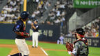 [OSEN=고척, 김성락 기자] 23일 오후 서울 구로구 고척스카이돔에서 ‘2023 신한은행 SOL KBO리그’ 키움 히어로즈와 두산 베어스의 경기가 열렸다.7회말 무사 1루 키움 이형종이 몸에 맞는 볼로 출루, 1루에서 두산 영석환과 이야기를